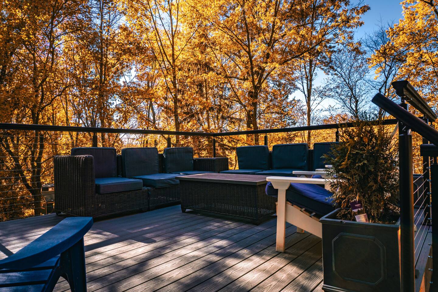 Newly renovated and fully updated 2000+ square foot home situated on over one acre in wooded suburbs, north of Pittsburgh. Over 400 sq foot multi-level deck with seating for 8-10 Dedicated work space w/ door for privacy French doors on the upper and lower levels of the deck Wildlife abounds with frequent deer, squirrels, birds, raccoon and red fox sightings right out the front and back doors. Five 4k smart tv's with high speed internet for your convenience Fully equipped kitchen and coffee bar Elevated oversized bathtub in the lower level that is perfect for a peaceful late evening bath, bathing the children or even your four footed friend. We are a shoe-free home to help in keeping our home in pristine condition and to keep our cleaning fees as low as possible.