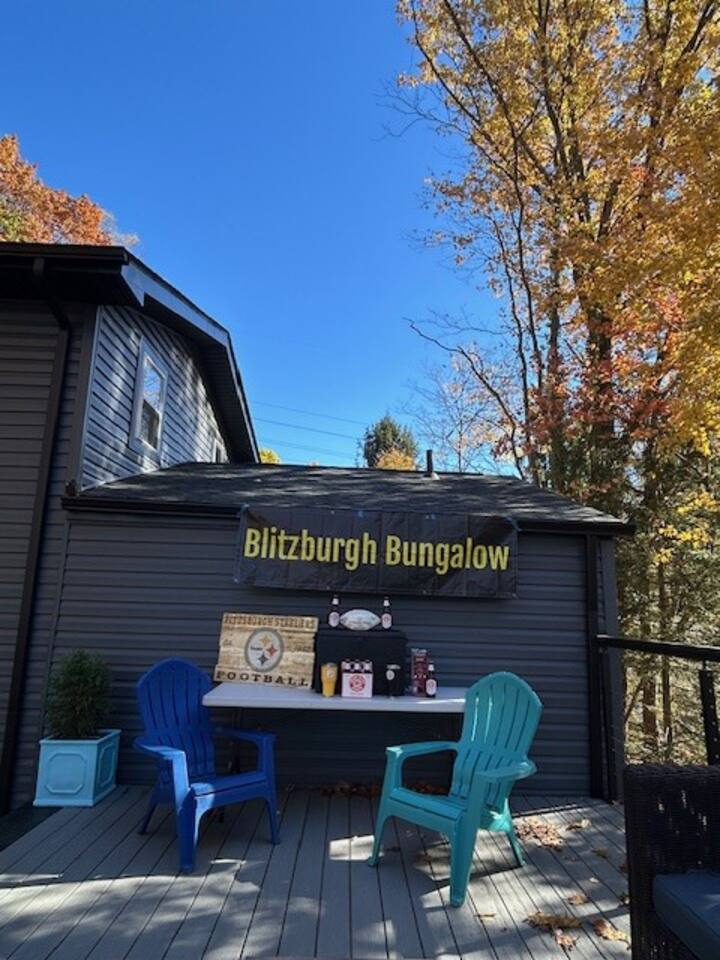 Whether visiting the Pittsburgh area for football, baseball, hockey or shows/concerts the Blitzburgh Bungalow is for guests that want comfort and room to roam w/over 2000 sq ft of living space, brand new fixtures & privacy outside of the hustle/bustle of the City Just 15 minutes north of downtown Pittsburgh & major stadiums, venues, universities and hospital systems and situated on over an acre of wooded property Regional shopping and dining just 4 mins away Curated services available
